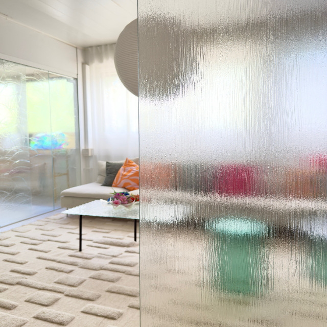As the sole producer of artisan glass in the Nordic countries, we craft patterned glass surfaces in various designs and finishes, available in 8 different shades. We also offer ready-made products from our extensive range e.g. glass walls, doors, and furniture.