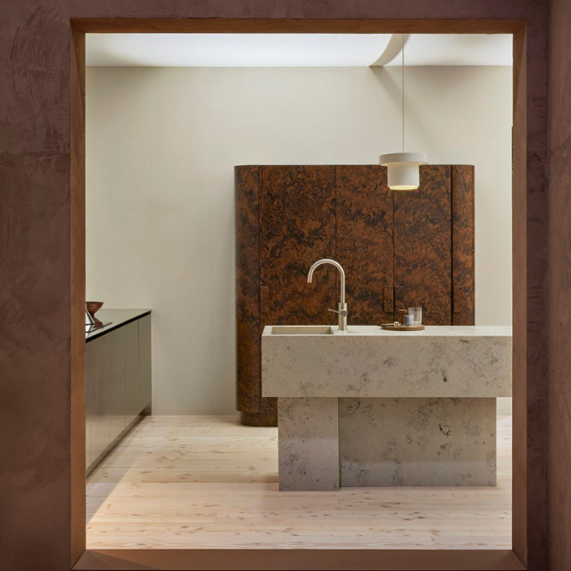 At Habitare’s Naapurit stand, Tulikivi presents a collection where natural stone is present in every space: in sauna heaters, spa details, kitchen surfaces, and in the fireplace and bedroom elements. The palette of materials ranges from deep Rosso Lepanto to timeless Bianco Carrara and striking Cipollino Renoir, as well as Arabescato Corchia. Each material tells its story through a unique visual language.